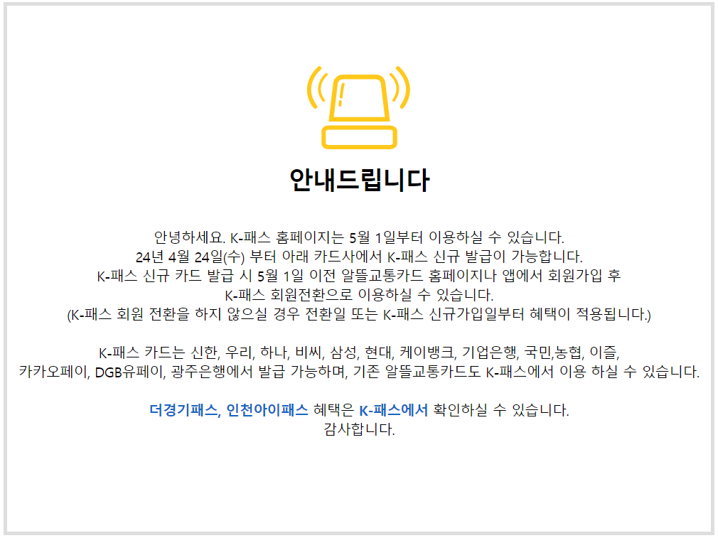5월 1일자 시행이지만 편의를 위해 4월 24일부터 더경기패스카드 사전신청이 가능하고 5월 1일에 바로 등록해 사용하시면 됩니다.